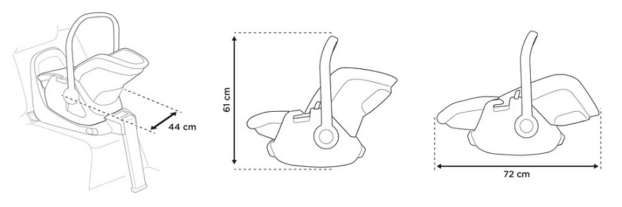 - Sokoldalú használat: autósülés + babakocsira tehető + hordozó + repülőgép kompatibilitás.